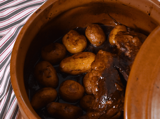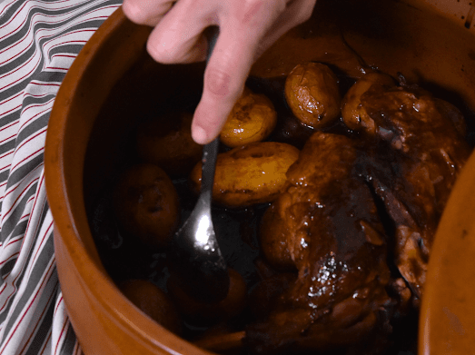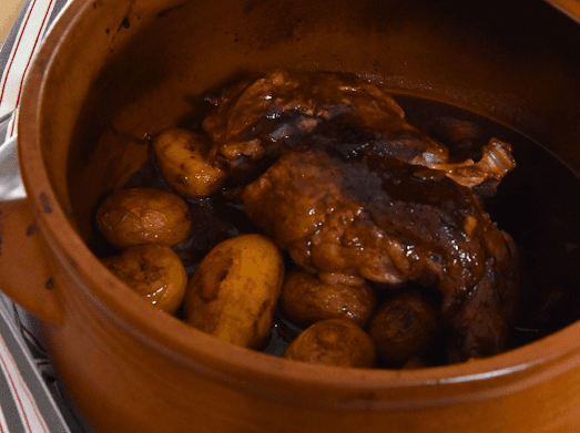 Αρνί στην γάστρα με εσπεριδοειδή, πετιμέζι, μάραθο και baby πατάτες