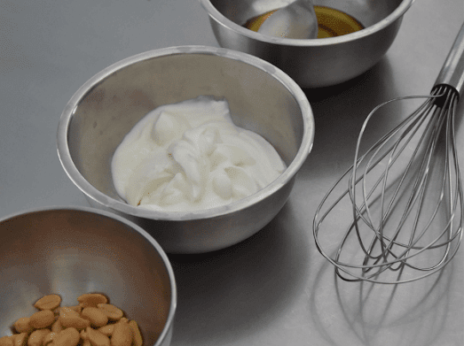 Παίρνουμε ένα μπολάκι ή ένα βάζο και ρίχνουμε το μείγμα με το γιαούρτι.
